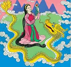 Một hôm, tự nhiên ngoài biển khơi có một vùng sóng gió nổi lên dữ dội làm bầu trời tối mịt. Hồi lâu có một con giao long rất lớn ngoi vào bờ, trườn lên đất liền. Giao long quằn đuôi trên bãi cát làm vẹt đất thành từng đường ngoằn ngoèo. Gió thổi ào ào, bụi cát mù mịt. Gian lều của ông già gần đó xem chừng muốn đổ. Cuối cùng một tiếng gào rống lên, rồi một chiếc trứng lớn trong bụng giao long xuất hiện bên cạnh nhà của ông già. Đẻ xong, giao long lại trườn xuống biển đi mất.