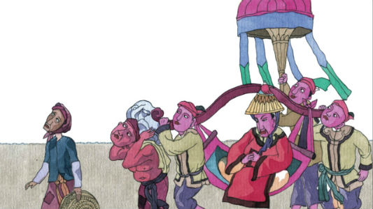 – Cứ như lời mụ khai thì hòn đá kia là kẻ phạm tội. Dù nó là đá cũng không thể vượt được phép nước. Ta sẽ vì nhà mụ mà bắt nó bồi thường. Lính đâu! Đưa bị cáo về công đường đối chất.